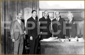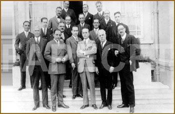 El secretario de Industria, Comercio y Trabajo, Abelardo L. Rodríguez, con miembros de la Confederación de Cámaras de Comercio, 1932